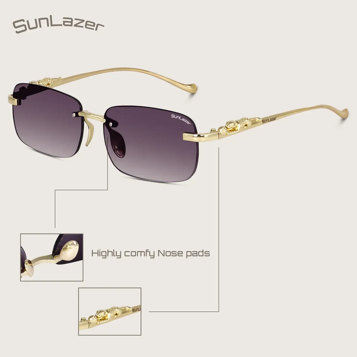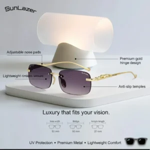Step into timeless luxury with SunLeather® Luxury Rimless Sunglasses, crafted for those who appreciate elegance, confidence, and premium design. These sunglasses feature a sleek rimless structure paired with rich gradient lenses and a refined gold-tone metal frame that exudes sophistication.