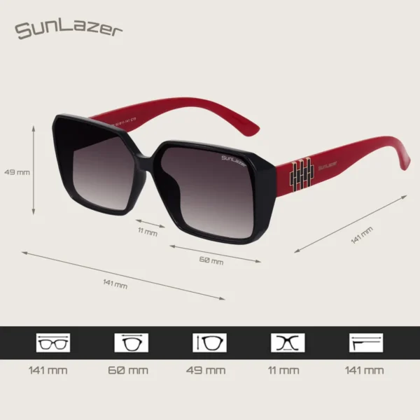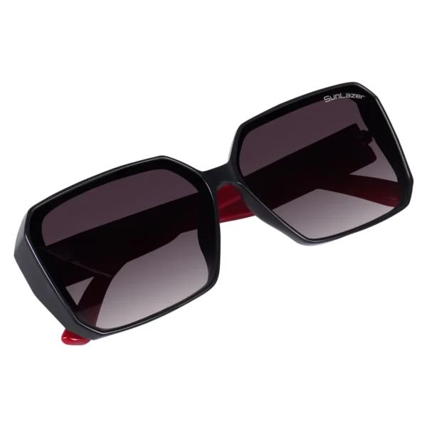 🕶️ SunLazer Bold Square Sunglasses – Black Frame with Red Temples