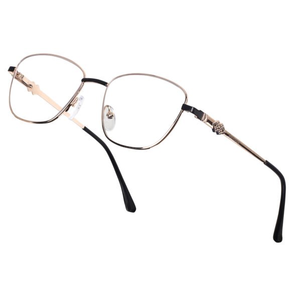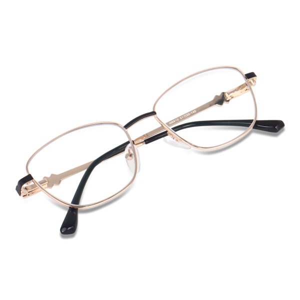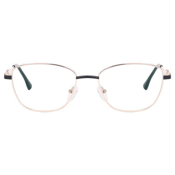 The lightweight metal construction ensures all-day comfort, while adjustable nose pads provide a secure and personalized fit. Finished in a premium gold tone with contrasting temple tips, this frame complements both formal and casual outfits effortlessly.