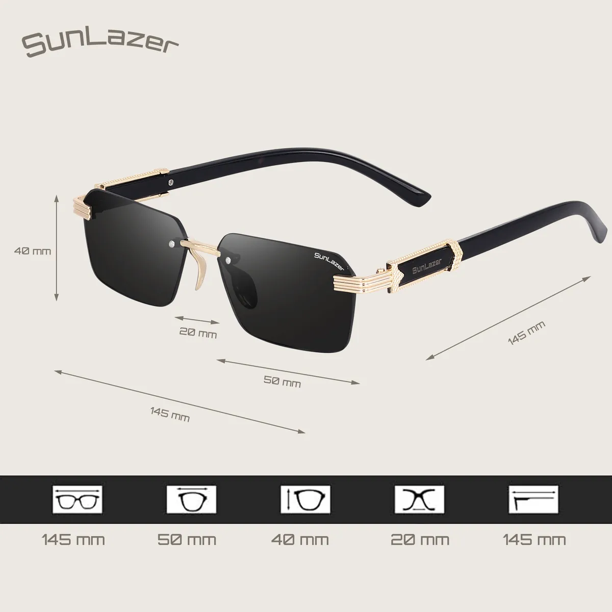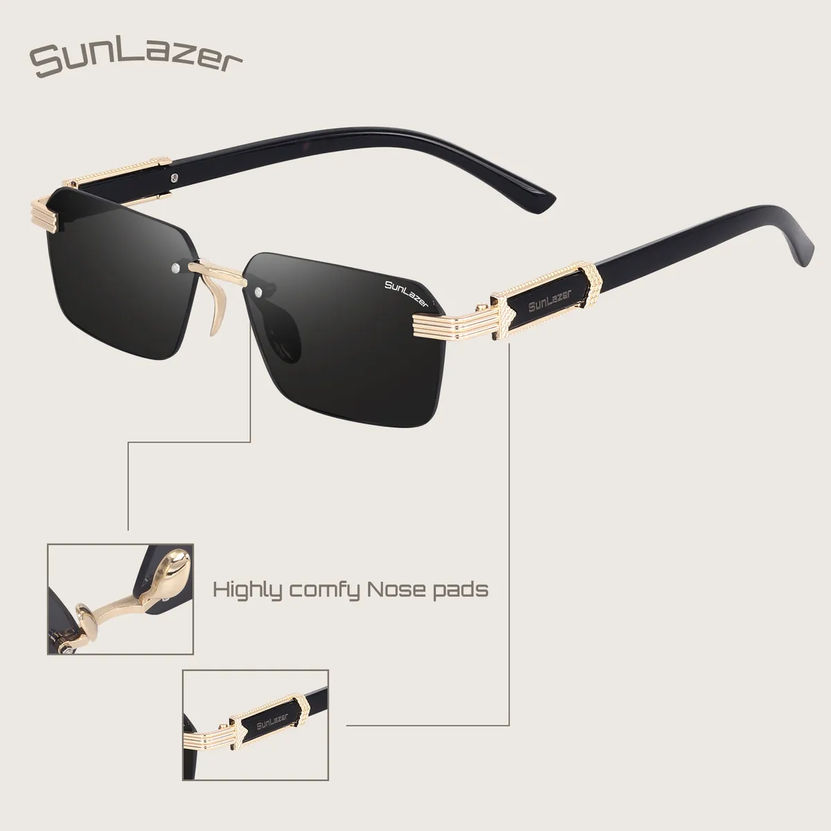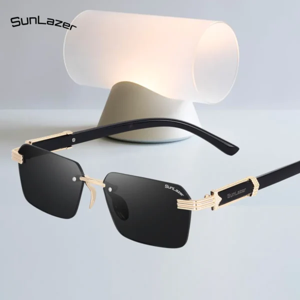 Elevate your everyday style with SunLeather® Luxury Rimless Sunglasses, designed for men who value bold elegance and premium craftsmanship. Featuring a modern rimless silhouette, deep black lenses, and refined gold-tone metal detailing, these sunglasses are the perfect blend of luxury and attitude.